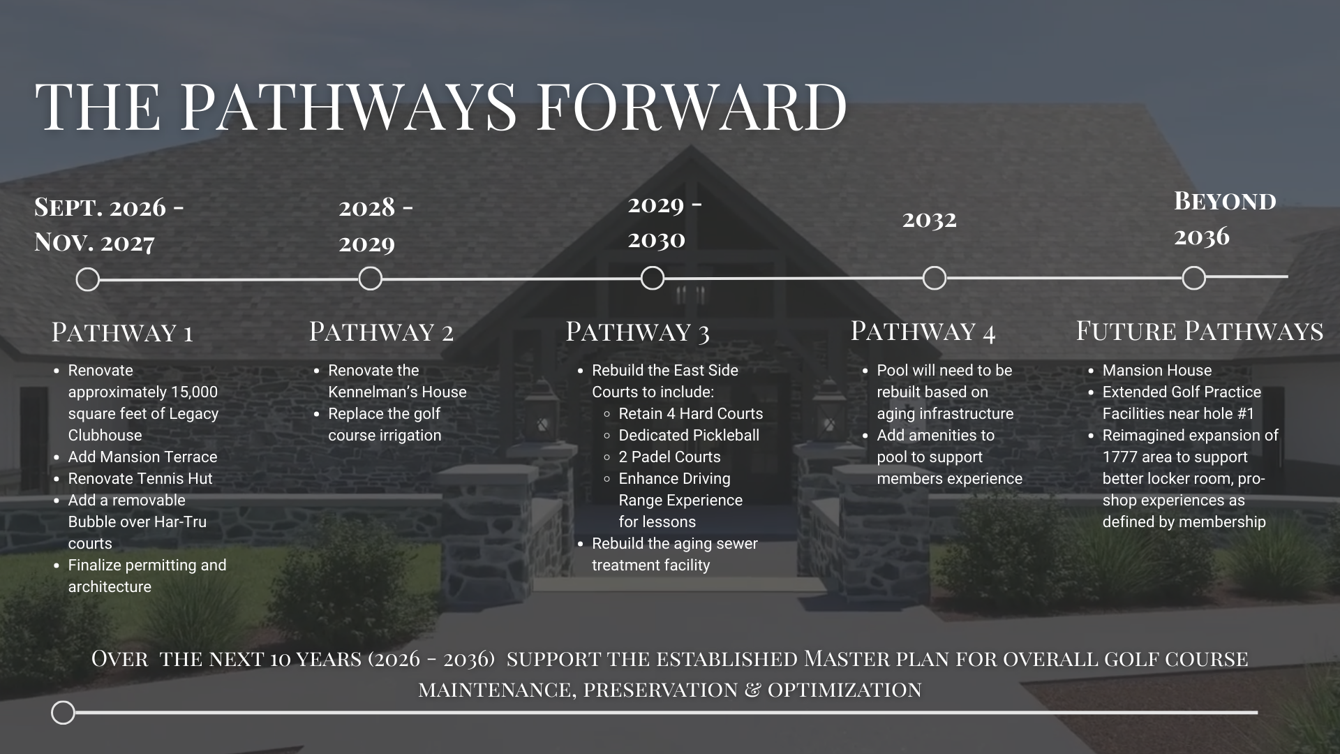 Redefining racquets sports with bold expansion – Transforming our current asset into a true racquets hub.